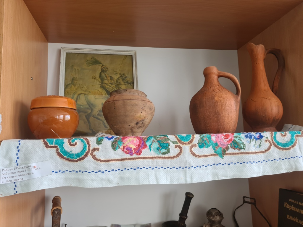 Этот раздел экспозиции состоит из фотоматериалов, вещей, которые смогли взять с собой и сохранить во время депортации 1944 года: кувшины, Караны, турка и др.