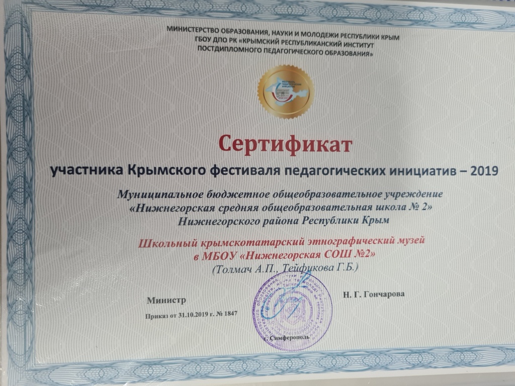 Школьный крымскотатарский этнографический музей является результатом поисково-собирательской деятельности учащихся, педагогов, родителей и общественности.